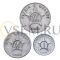 Две монеты 5 рублей в буклете "150 лет РИО" и "170 лет РГО