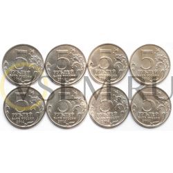 Набор №3-4 8x5 руб 2014г. Битвы: Ленинградская, Белорусская, Львовская, Кишиневская, Прибалтийская, Заполярье, Висло-Одерская, Будапештская.