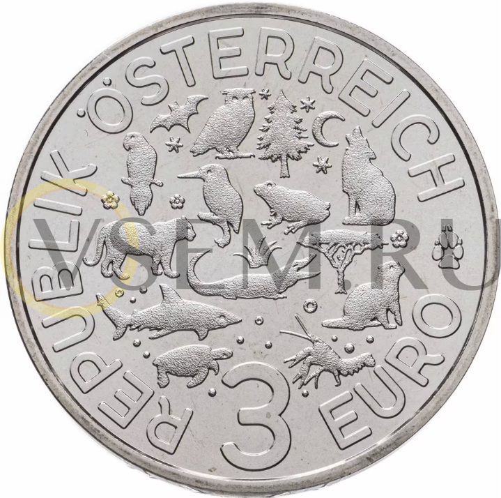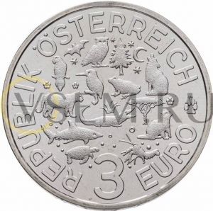 Серия 2016~н.в. - 2я республика (Евро) Цветные Животные 3 Евро