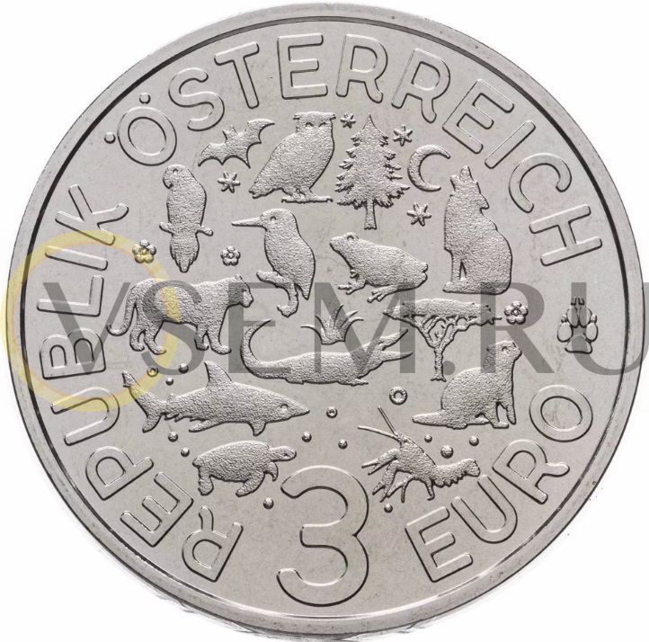 | Серия | 2016~н.в. - 2я республика (Евро) Цветные Животные 3 Евро |