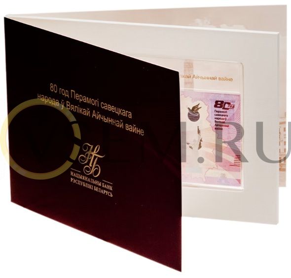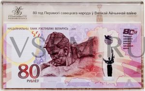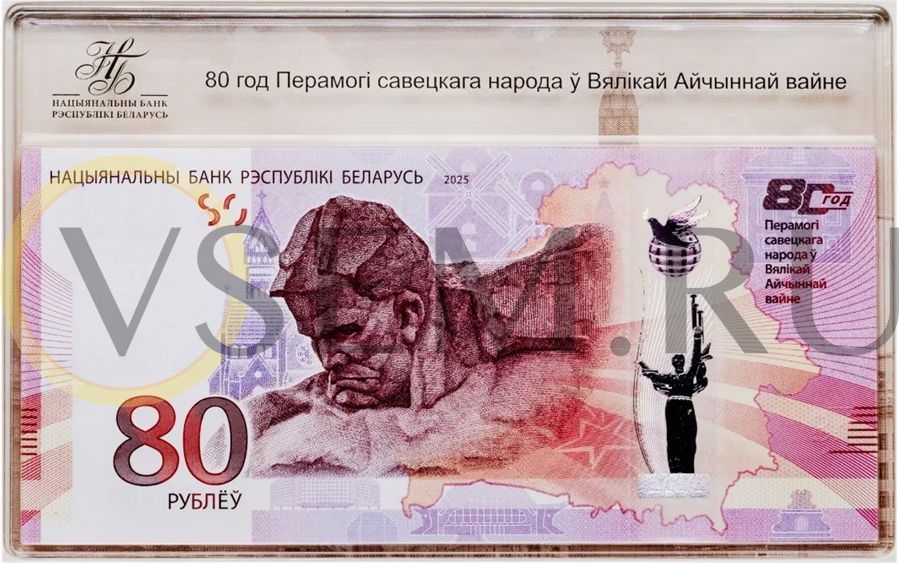 Беларусь 80 рублей 2025 "80 лет Победы в Великой Отечественной войне" ПРЕСС в футляре
