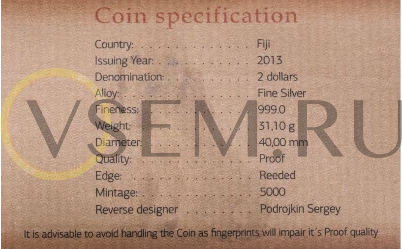 | Название на русском | Фиджи 2 доллара 2013 (Английский кокер-спаниель) |