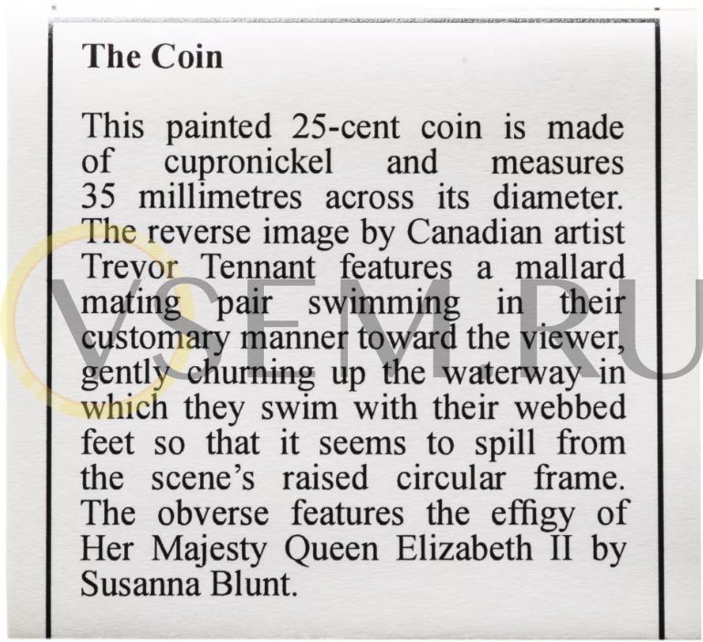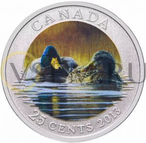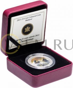 Канада 25 центов 2013 "Птицы Канады - утка Кряква" в футляре, с сертификатом