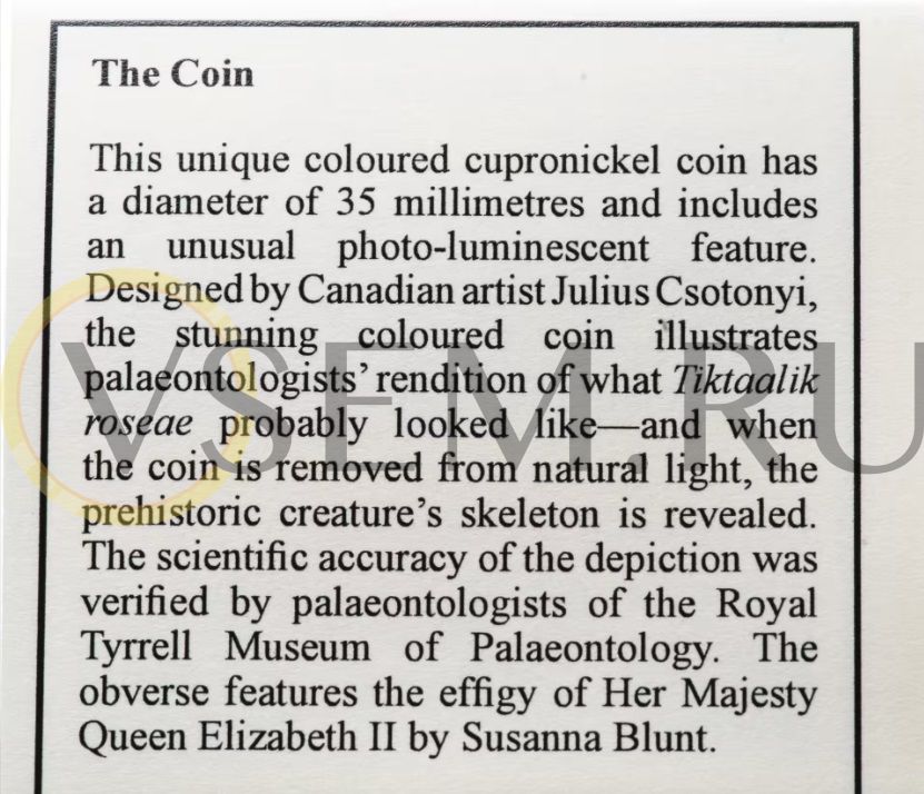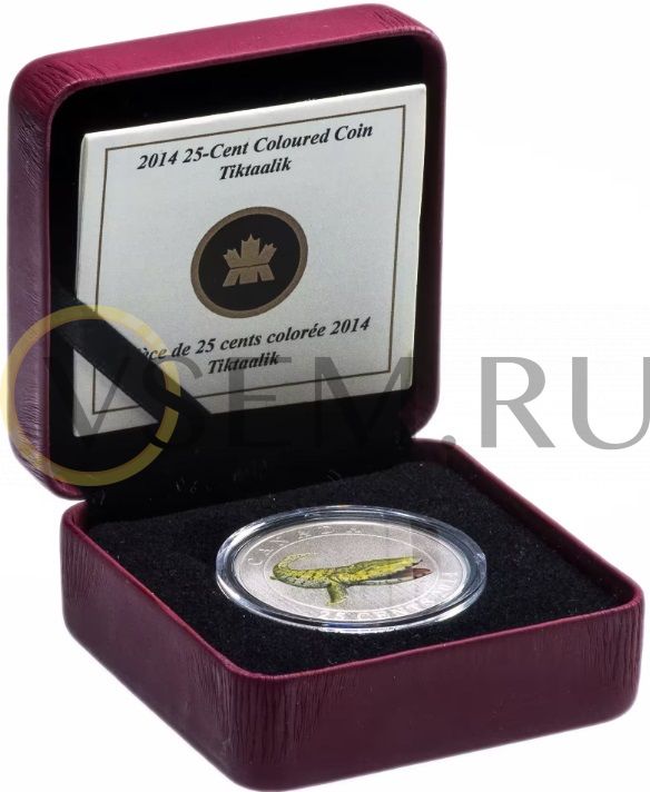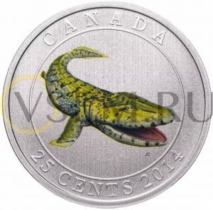 Канада 25 центов 2014 Доисторические создания Канады - Тикталик, в футляре, с сертификатом