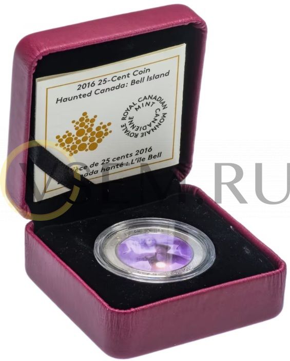 Канада 25 центов 2016 "Привидения Канады - остров Белл" в футляре, с сертификатом