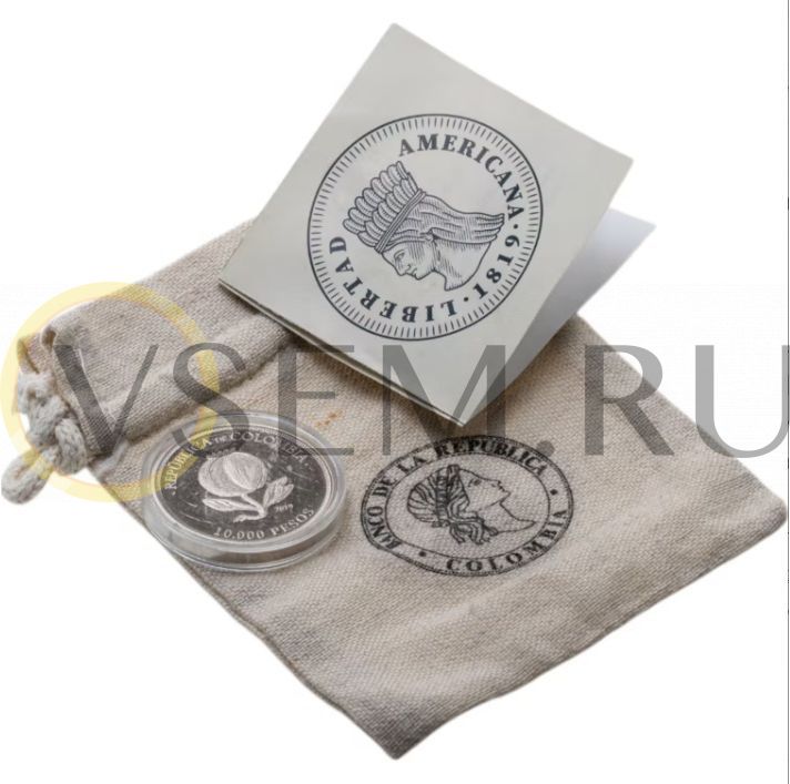 Колумбия 10000 песо 2019 "200 лет Независимости" в мешочке с сертификатом
