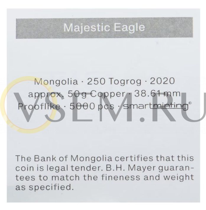 | Название на русском | Монголия 250 тугриков 2020 (Величественный орел) |
