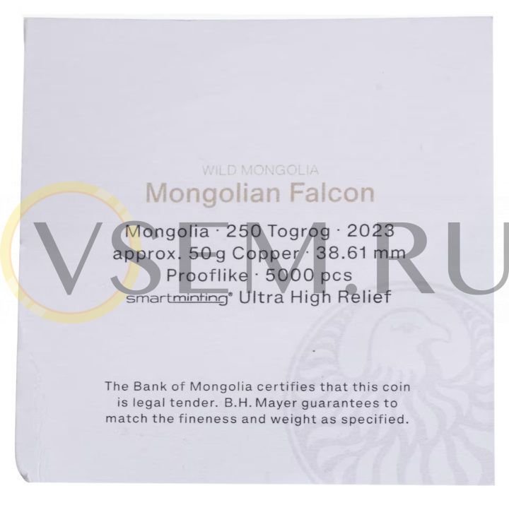 | Название на русском | Монголия 250 тугриков 2023 (Дикая природа Монголии: Монгольский сокол) |
