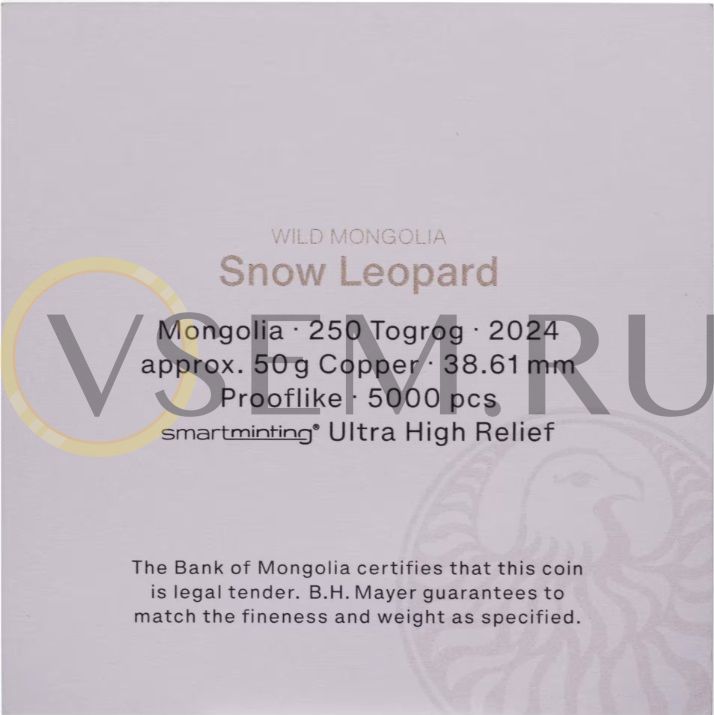 | Название на русском | Монголия 250 тугриков 2024 (Снежный барс) |