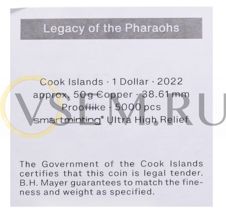 Острова Кука 1 доллар 2022 Наследие фараонов, в капсуле с сертификатом