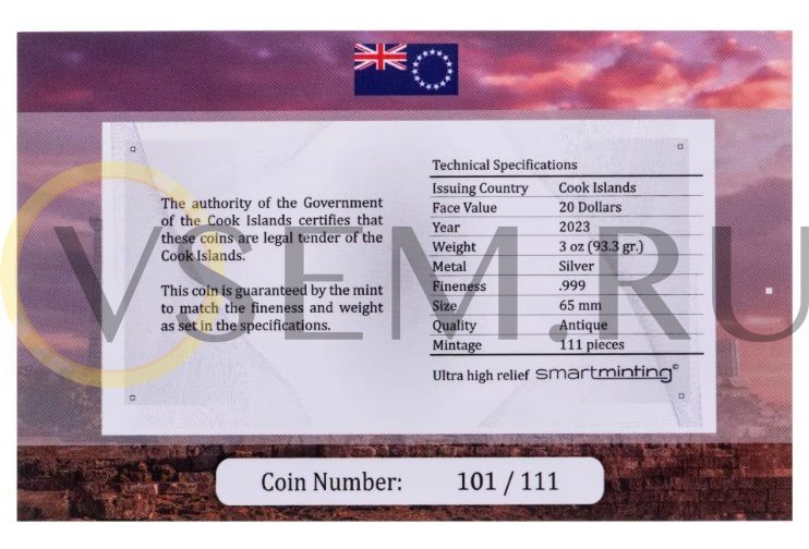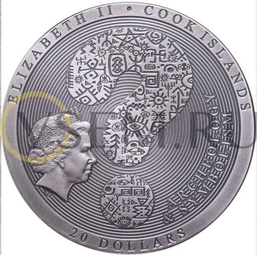 Острова Кука 20 долларов 2023 "Археология и символизм - Антикитерский механизм" выборочная позолота, в футляре с сертификатом