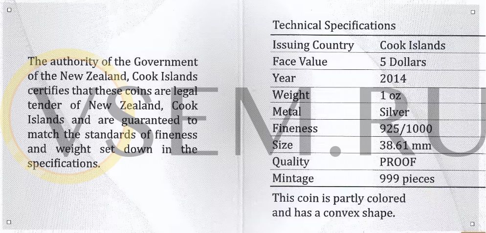 Название на русском | Кука, острова 5 Доллар Островов Кука, 2014 |