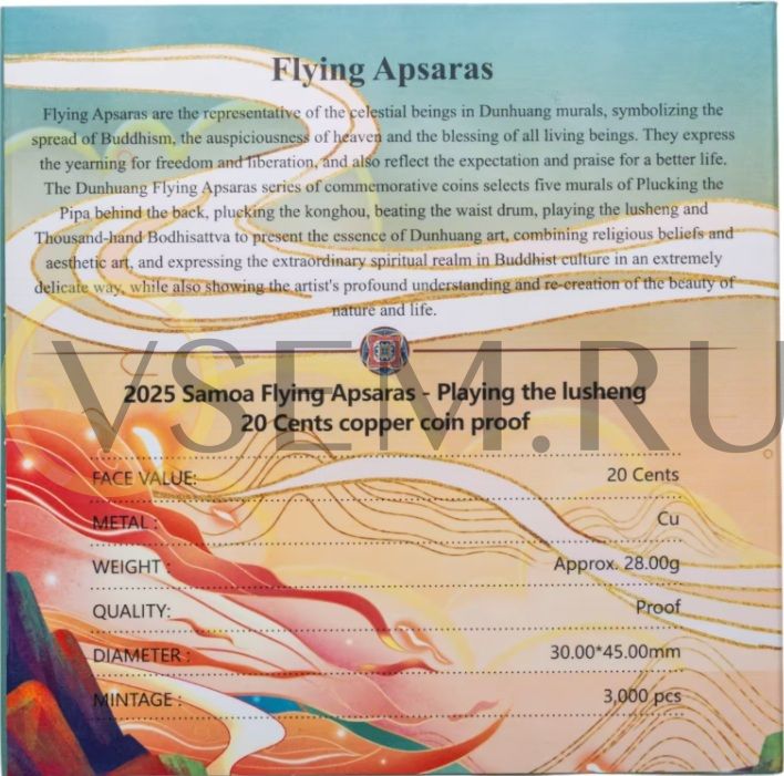 Название на русском | Самоа 20 центов 2025 (Летающие апсары. Игра на лушене) |