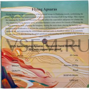 Самоа 20 центов 2025 "Летающие апсары: Тысячерукий бодхисаттва" в рамке с сертификатом