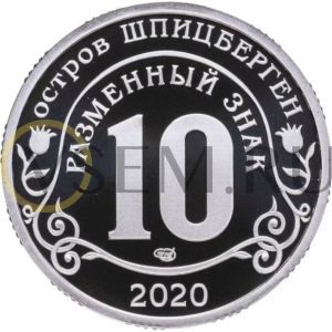 Шпицберген 2020 монетовидный жетон 10 разменных знаков СПМД "Мировая Пандемия COVID-19" в капсуле