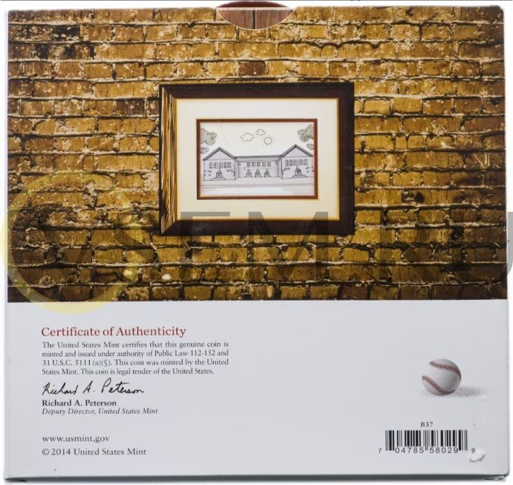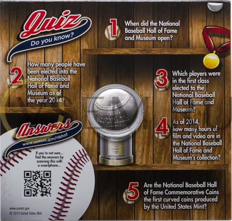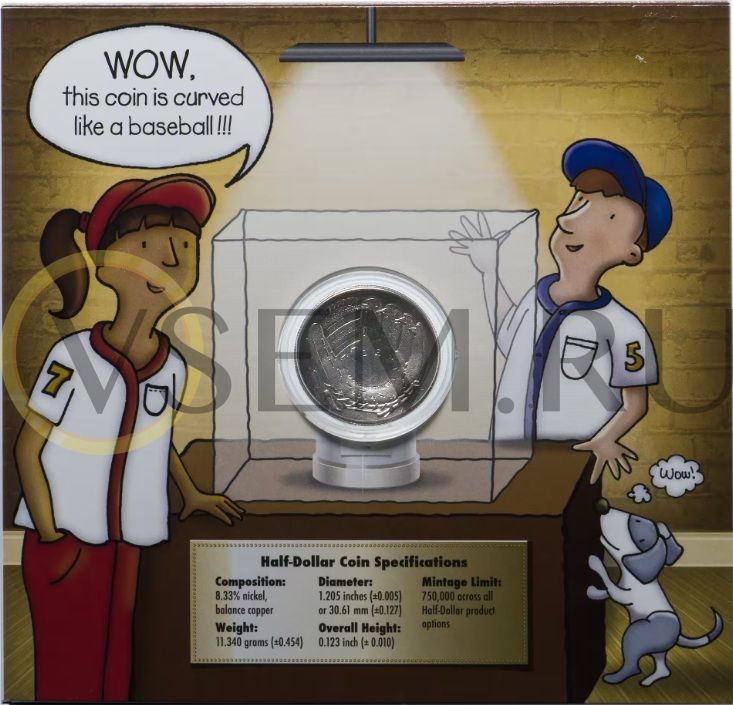США 1/2 доллара (50 центов) 2014 "Национальный зал славы бейсбола", UNC в буклете