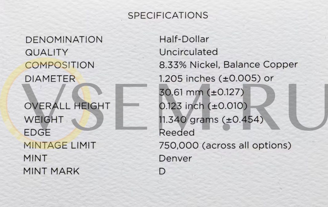 США 50 центов 2014 UNC "Национальный зал славы бейсбола", в футляре с сертификатом