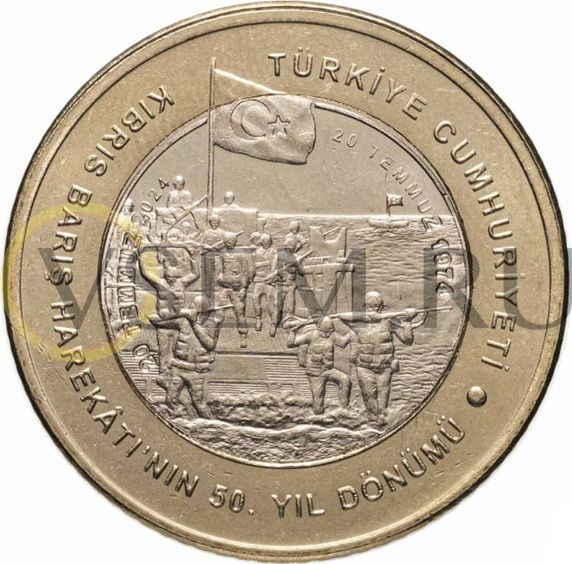 | Название на русском | Турция 5 лир 2024 (50-летие мирной операции на Кипре) |