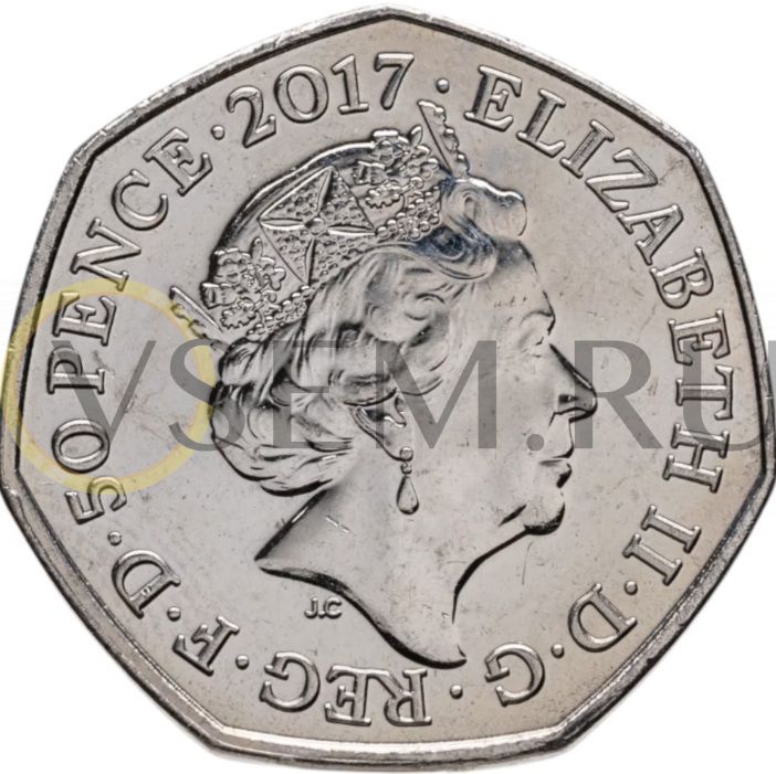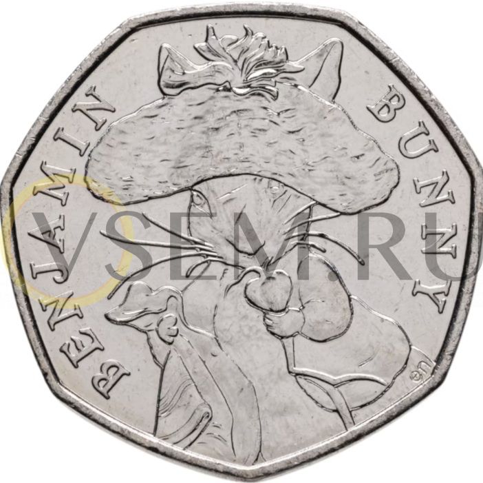 Великобритания 50 пенсов 2017 "150 лет со дня рождения Беатрис Поттер, Бенджамин Банни"