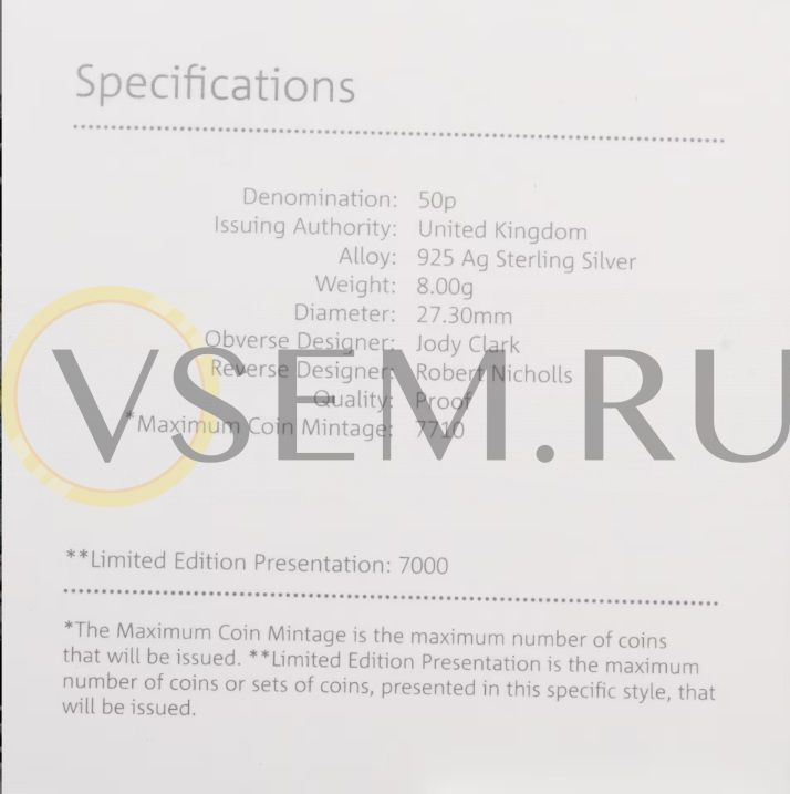 Название на русском | Великобритания 50 пенни 2020 (Динозаврия: Гилеозавр) |