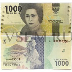 На лицевой стороне в центральной части банкноты – портрет капитана Паттимуры (Томас Матулесси, 1783 – 1817) – амбонийского солдата-христианина, находившегося на службе в Британской армии, в 1817 г. возглавившего восстание против нидерландских колониальных властей на Молуккских островах. Справа внизу под портретом – пояснительная надпись. В левой нижней части банкноты надпись в две строки на английском и индонезийском языках: BANK INDONESIA / SERUBU RUPIAH. В правом верхнем углу банкноты – герб страны, в правом нижнем углу – год выпуска и подписи управляющего банком и его заместителя. Номинал числом "1000" размещен в левом верхнем углу (горизонтально крупными цифрами) и правой части банкноты (вертикально маленькими цифрами).