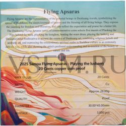 Самоа 20 центов 2025 "Летающие апсары: Игра на пипе за спиной" в рамке с сертификатом