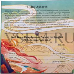 Самоа 20 центов 2025 "Летающие апсары: Игра на поясном барабане" в рамке с сертификатом