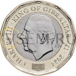 Гибралтар 1 фунт 2024 12-ти гранная монета "Коронация со Знаком Двора" со специальной privy mark