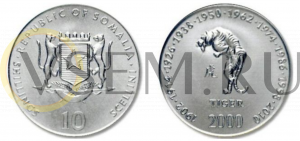 Сомали 10 шиллингов 2000 Китайский гороскоп. Тигр