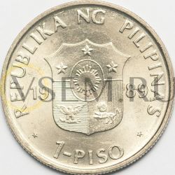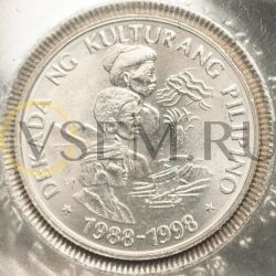 Филиппины 1 песо 1989 Декада Филиппинской культуры; люди, горы, парусник