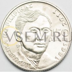 Филиппины 1 песо 2011 150 лет со дня рождения Хосе Ризал