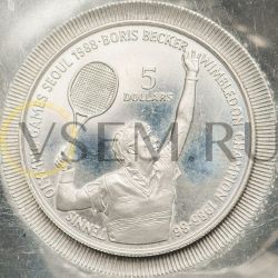 Ниуэ 5 долларов 1987 Олимпийские игры в Сеуле - теннис. Борис Беккер