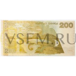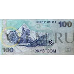 На оборотной стороне банкноты вверху находится серийный номер, отпечатанный красной краской; текст "КЫРГЫЗ БАНКЫ", подчеркнутый линией микрошрифта с надписью "КЫРГЫЗ БАНКЫ" и число "20". В центре изображен Мавзолей Манаса (XIV в). Внизу находится число "20"; серийный номер, отпечатанный черной краской. Слева на вертикальной орнаментальной полосе расположен текст "ЖЫЙЫРМА СОМ"