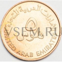 Арабские Эмираты (ОАЭ) 5 филс 1973-1989 FAO, рыба (AU-UNC)