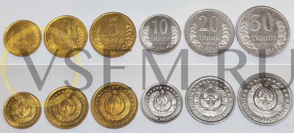 В данный набор входят 6 монет 1994 года Узбекистан, номиналом 1, 3, 5, 10, 20 и 50 тийин.