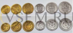 Набор монет 1994 года Узбекистан (6 монет).