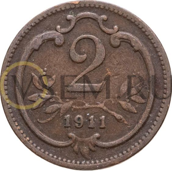 Австро-Венгрия 2 геллера 1892-1915 (VF-XF)