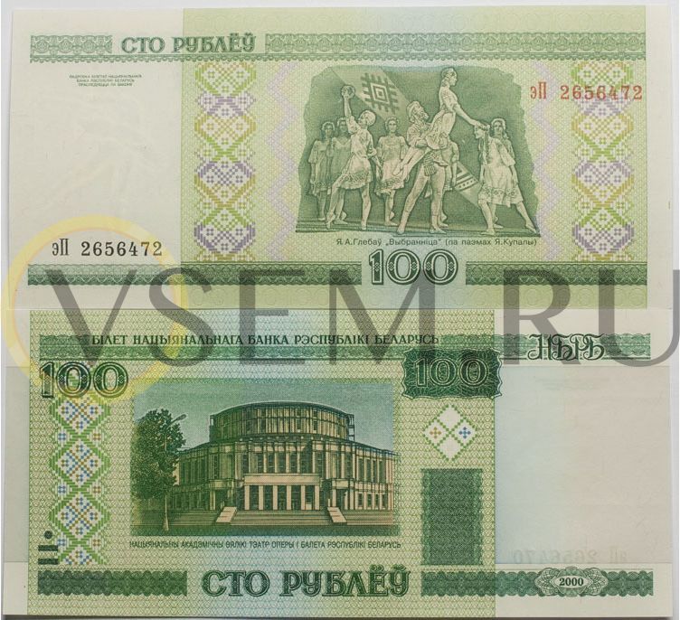 Беларусь 100 рублей 2000 Серия эП (P-26b)