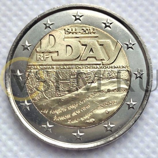Название на русском Франция 2 евро 2014 (70-летие ДНЯ Д)