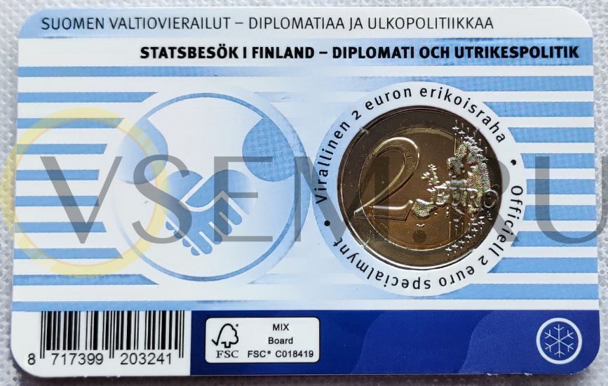 Финляндия 2 евро 2025 Дипломатия BU в блистере, голубая (ENG)
