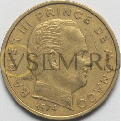 Монако 20 сентимо 1962-1982 Князь Ренье III (VF-XF)
