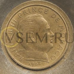 Монако 1 франк 1960-1982 Князь Ренье III (XF-UNC)