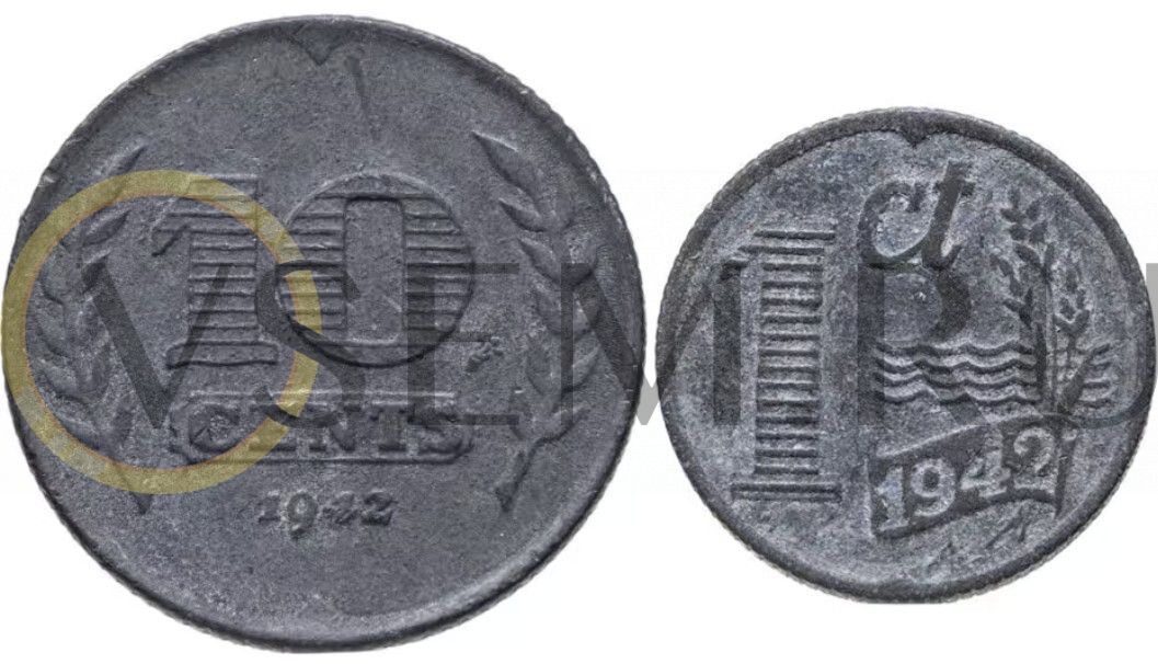 Нидерланды 2-1941-1944 Цинк (VF-XF)