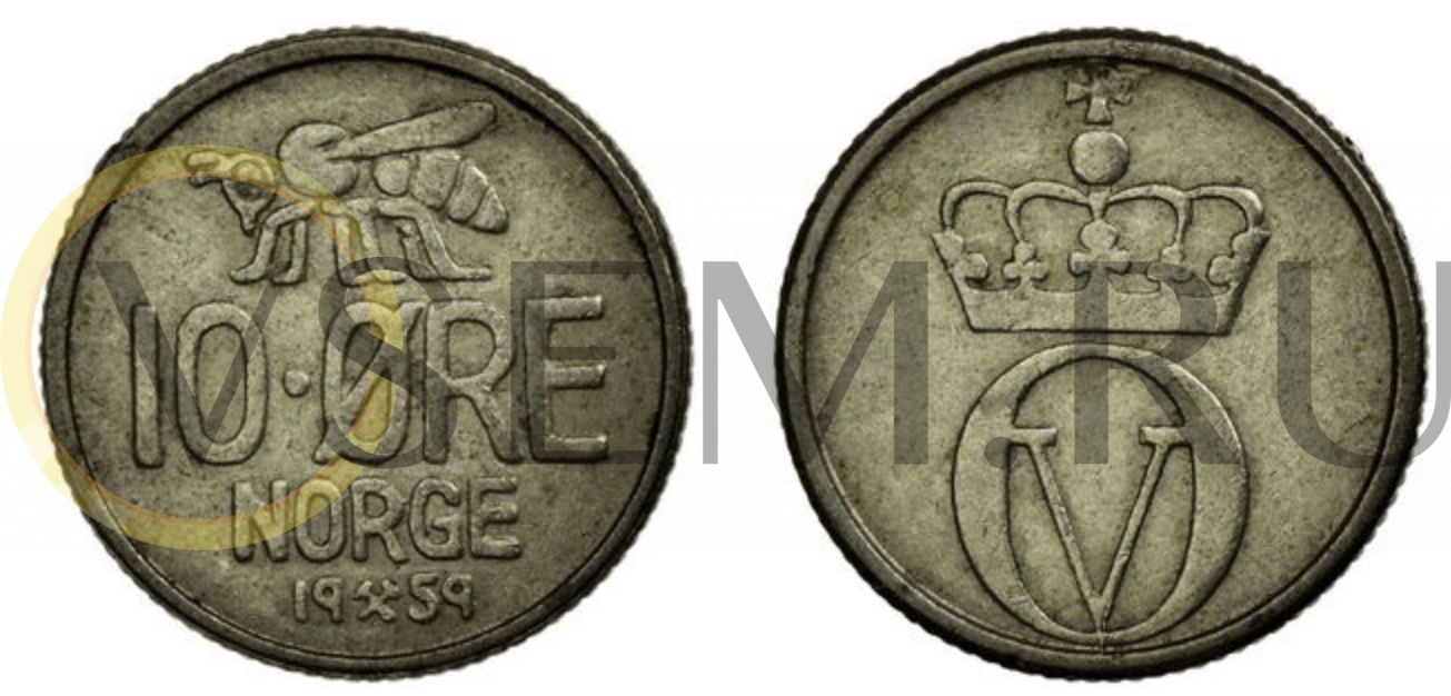 Название на русском | Норвегия 10 Норвежские эре, 1959-1973 |