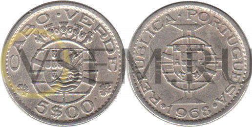 Португальская Кабо-Верде 5 эскудо 1968 (XF)