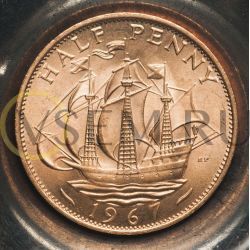 Великобритания 1/2 пенса 1967 Корабль; Елизавета II (XF-UNC)