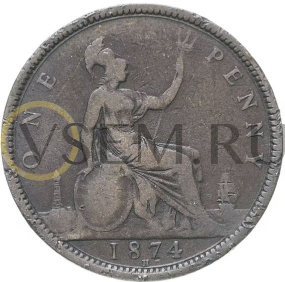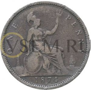 Великобритания 1 пенни 1874-1894 Виктория (F-VF)