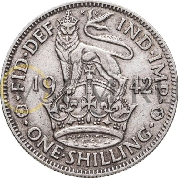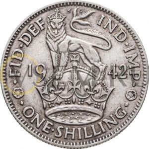 Великобритания 1 шиллинг 1942 Георг VI; лев стоит (серебро VF-XF)